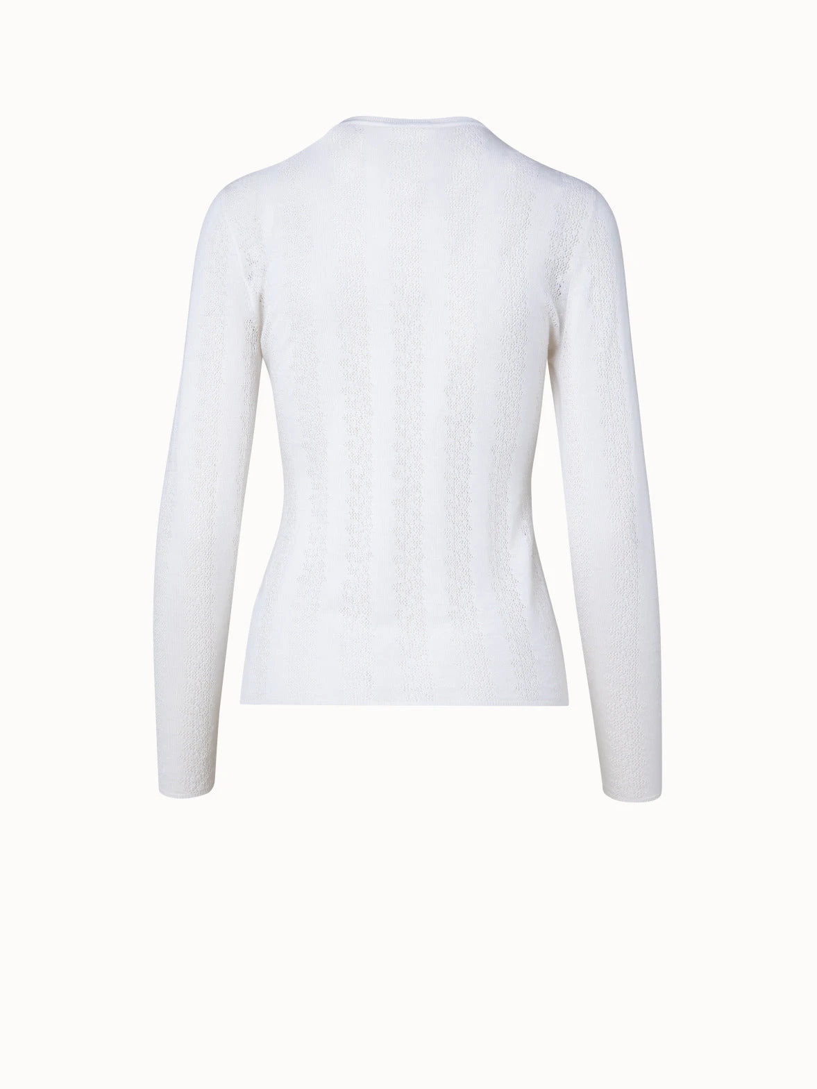 This Akris pullover is crafted in a wool and silk knit lace, creating subtle transparency in a striped pattern. Cut with a round neck and fitted silhouette, this knit pullover is an ideal modern and elegant underpinning.