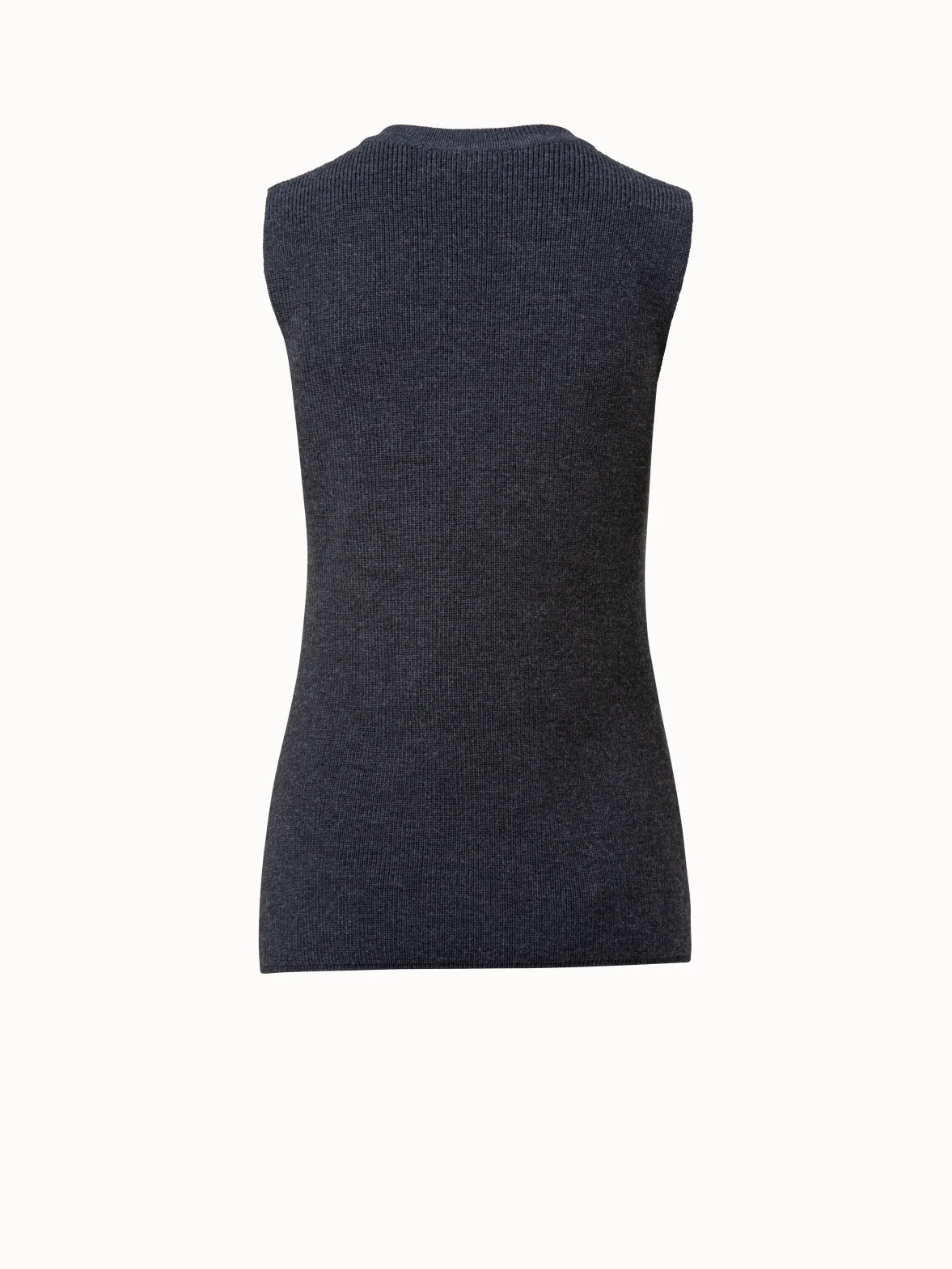 This wool stretch v-neck knit top is a versatile item to add to your wardrobe. The side slits and relaxed shape add ease for wear. Complete the look from head to toe with the matching wrap cardigan and knit pencil skirt.